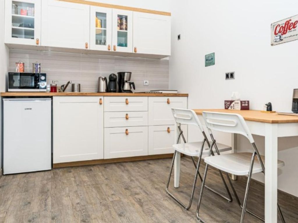 Dotări : cuptor, frigider, cuptor cu microunde, mașină de spălat vase, cafetiere, robot de bucătărie, storcător citrice, feliator mezeluri, prăjitor de pâine, veselă, pahare, masină de spălat rufe, prosoape, perne și pături suplimentare, papuci de unică folosintă, produse de igienă.