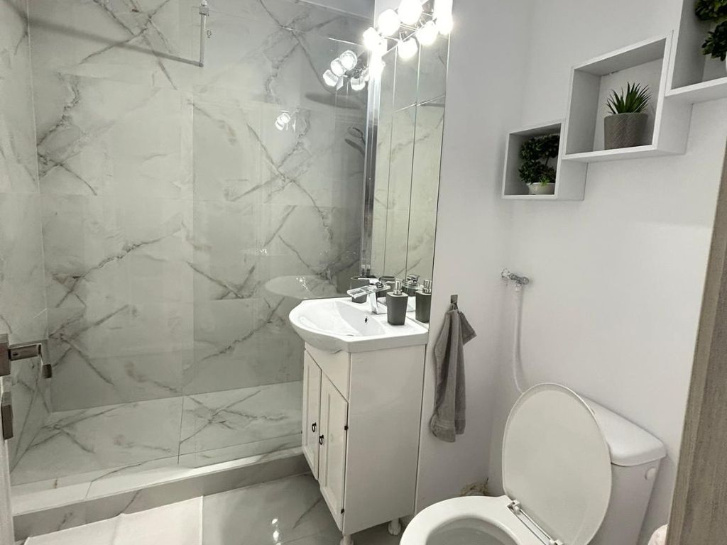 Apartamentul este compus dintr-un dormitor primitor, un living luminos cu zonă de luat masa și bucătărie complet utilată, o baie proprie elegantă și un balcon unde te poți bucura de aerul proaspăt al dimineții. Fiecare detaliu a fost gândit pentru a-ți oferi o experiență cât mai plăcută, de la finisajele moderne până la facilitățile incluse.